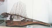 Various theories have been proposed to explain the function of this sail-like feature. A widely accepted theory holds that it served to adjust body heat. The exhibit was made by putting together actual fossils.