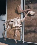 Yabe’s Giant Fallow Deer, now extinct, were a variety of deer far larger than recent deer. The exhibited skeleton of a Yabe’s Giant Fallow Deer comprises six fossils of roughly the same size, found separately at different sites in Japan. The antler is a replica of a fossil found in 1797 in Kamikuroiwa, Tomioka City, Japan, the oldest ever recorded in Japan. The actual fossil, as well as a record and minute illustration of the fossil, made at the time of excavation, are still kept in the collection of Jagu Jinja shrine in Tomioka city.