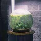 The Eco-ball, an experimentally designed closed ecosystem, features water plants that produce food and oxygen; fish, shrimps and shellfish that consume oxygen and food and generate carbon dioxide and organic substances (e.g. excrement); and microorganisms that decompose the excrement, waste and other organic substances. These organisms live in complex relationships with each other. The electric bulb installed on the Eco-ball provides the light necessary for photosynthesis by the water plants. It also heats the Eco-ball. The temperature of the Eco-ball is sometimes influenced by room temperature.