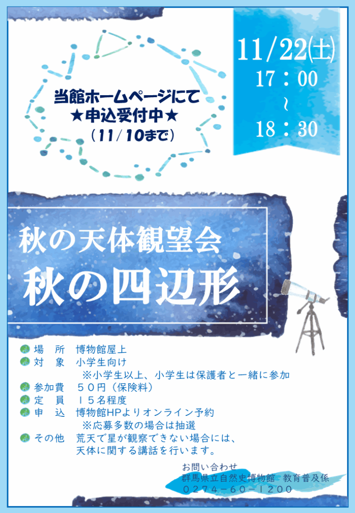- 博物館ホームページより予約(申込受付時間~11/10 17:00まで)