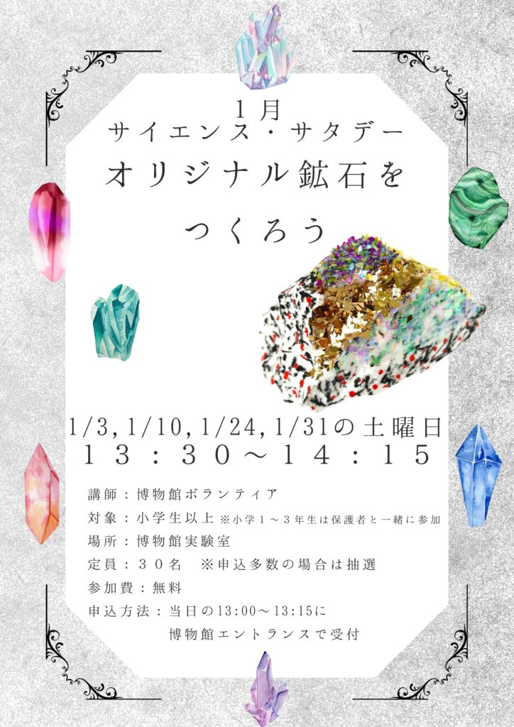 【1/3,1/10,1/24,1/31の土曜日開催!!】1月サイエンス・サタデー「オリジナル鉱石をつくろう」