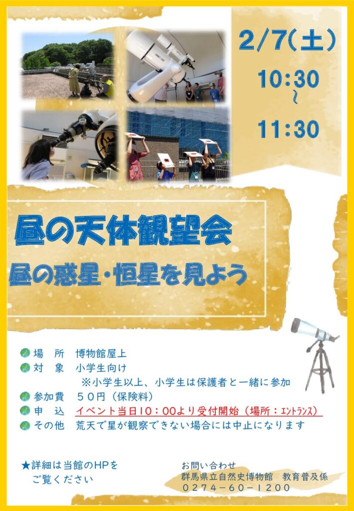 - 天体ドームの大型望遠鏡や移動式望遠鏡を使って昼の惑星や太陽を観察してみませんか。