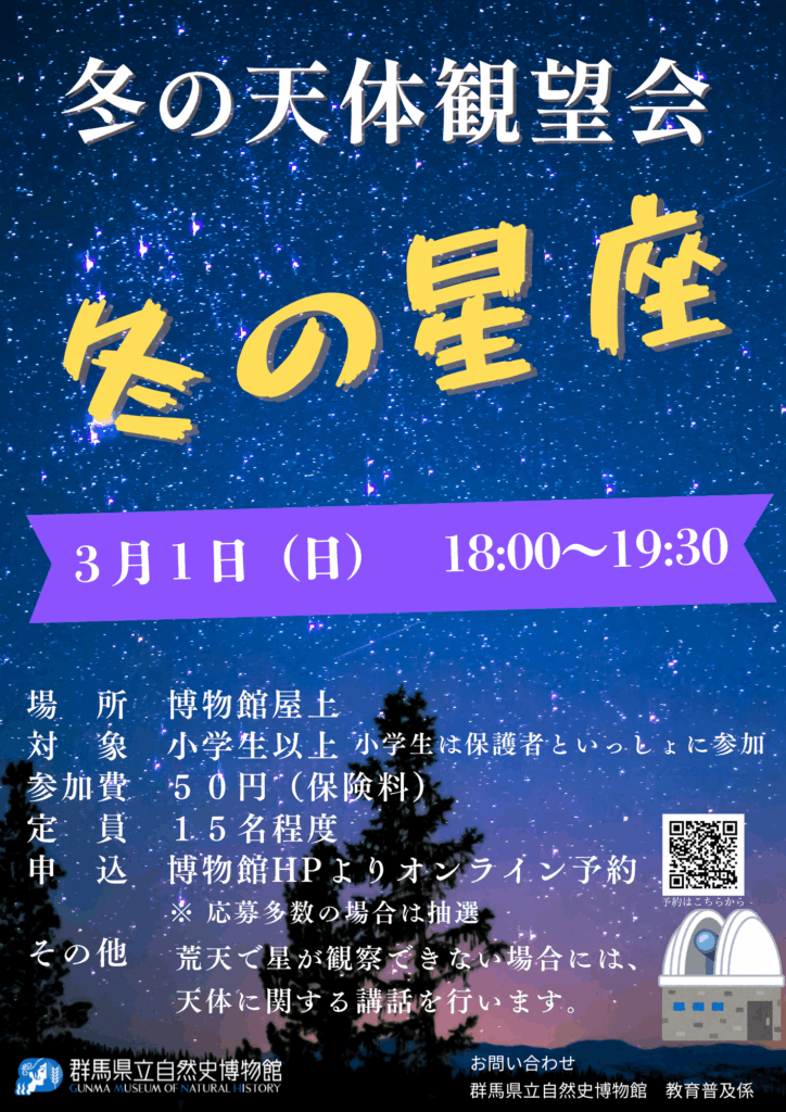 【3月1日(日)】冬の天体観望会