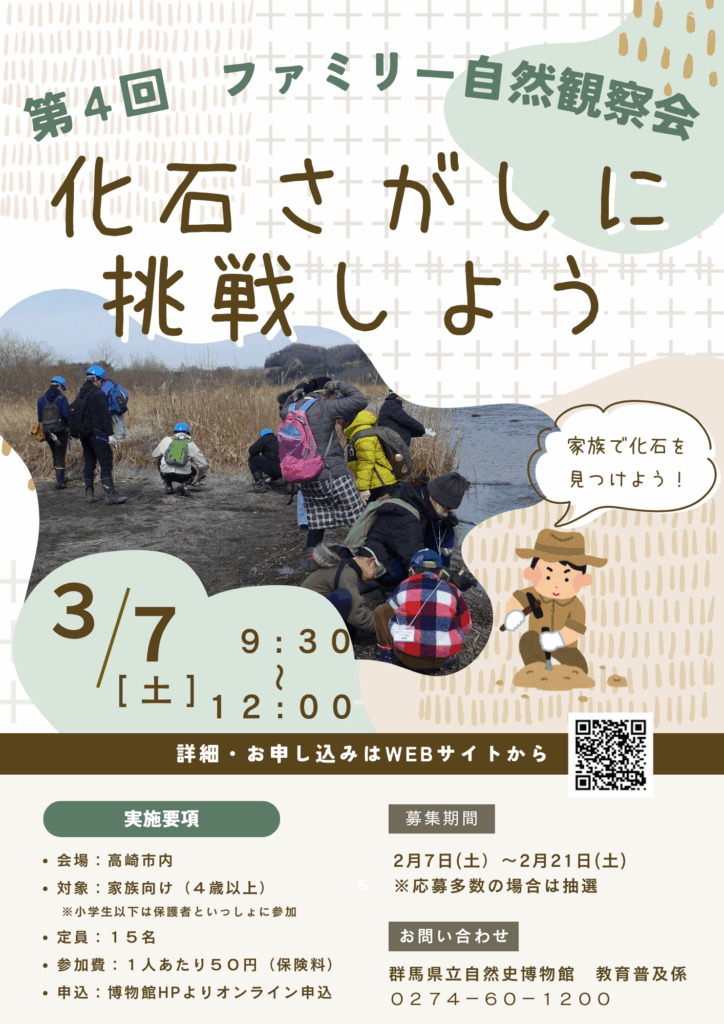 【3月7日(土)】ファミリー自然観察会「化石さがしに挑戦しよう」