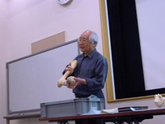 平成25年度友の会総会・講演会 活動日 2013年05月12日(日) 内容 平成25年度友の会総会を5月12日(日)に行いました。総会後,長谷川名誉館長による講演会が行われました。 ツキノワグマとヒグマについて説明する名誉館長 用意された化石を熱心に見る参加者
