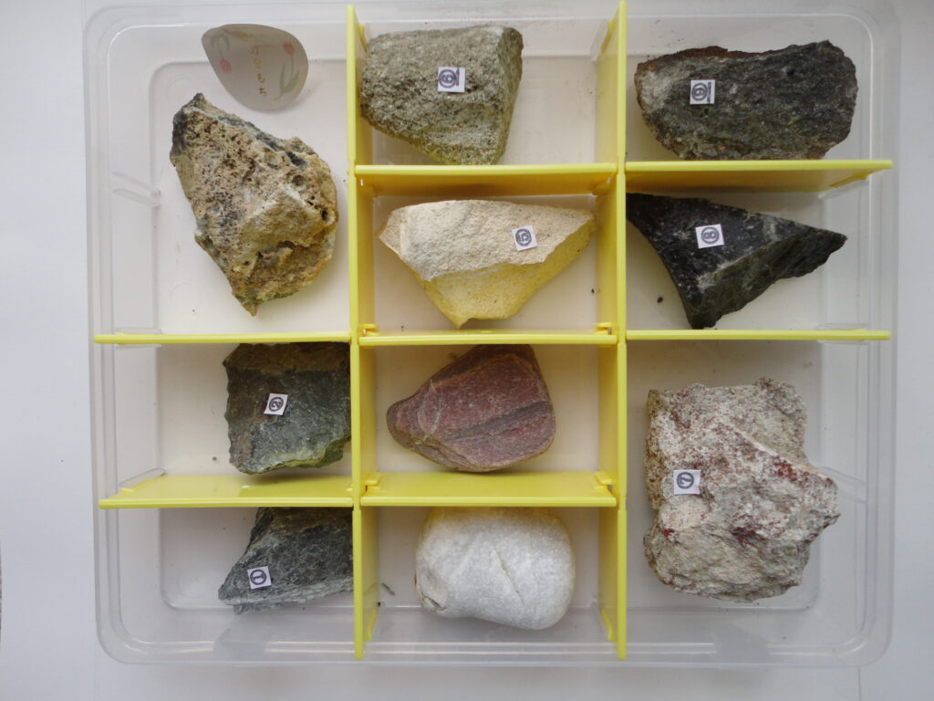 講師の方に用意していただいた標本セットを完成させるために河原で「チャート」と「石灰岩」を探しました。