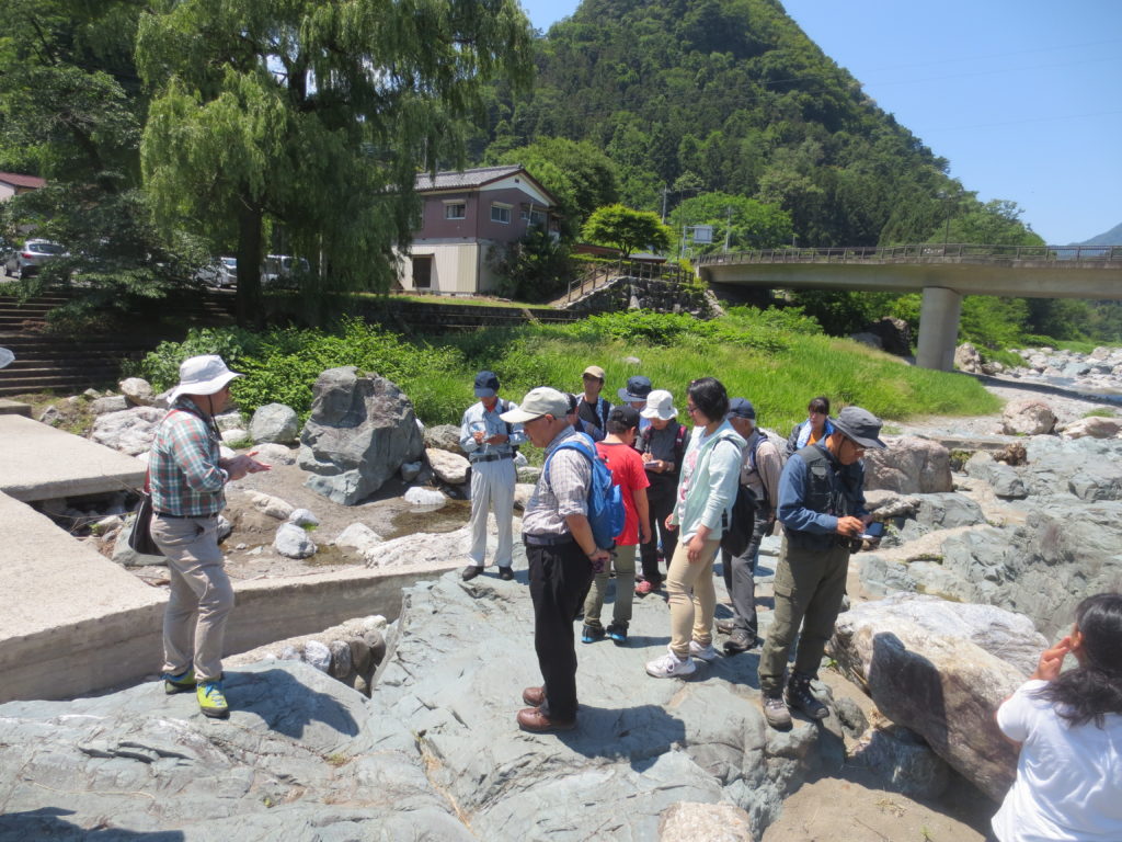 今年度第1回目の体験活動では、当館の菅原学芸員の解説のもと下仁田ジオパークでの体験活動を行いました。「蒔田不動の滝」からスタートし、「青岩公園」そして、「下仁田の町」を散策しました。太古の地球で起きていた地殻変動について触れ、参加者全員実物を目の前にしながら学ぶことができました。