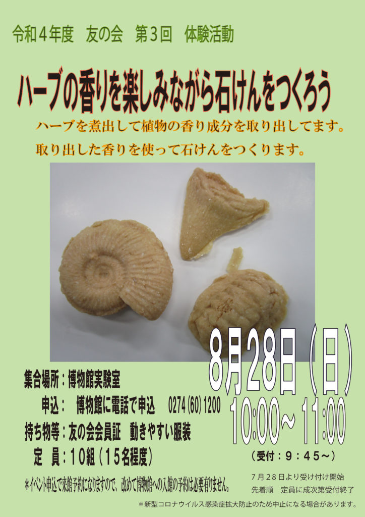 【満員御礼】第3回体験活動「ハーブの香りと楽しみながら石けんをつくろう」予定