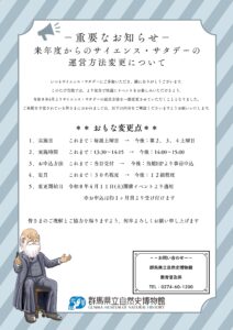 来年度からのサイエンス・サタデーの 運営方法変更について