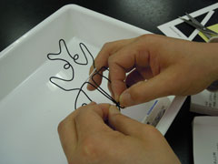 第4回サイエンスサタデー新規メニュー検討会が開催されました。新規メニューは「カラーワイヤーで昆虫をつくろう」です。実際に2種類の昆虫のカラーワイヤークラフトをつくり、改善点などを話し合いました。