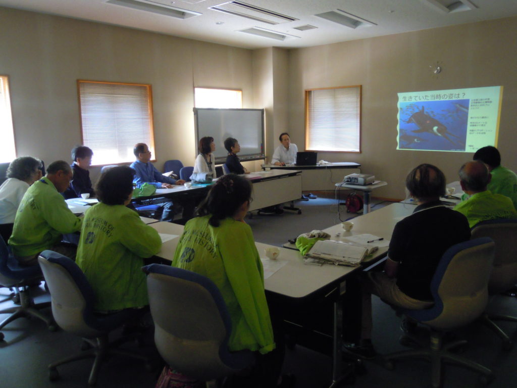今年度、第1回目の解説ボランティア定例会を行いました。当日は、解説ボランティア11名の参加がありました。新種として認定されたイルカ「ケントリオドン ナカジマイ」について木村学芸員よりレクチャーを行い、知見を深めることができました。今後の解説に役立てることができると思います。